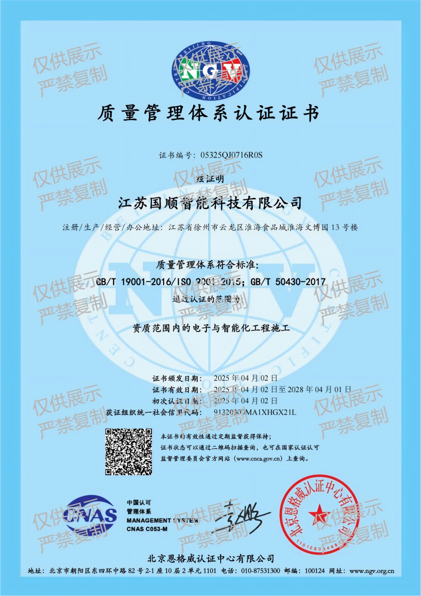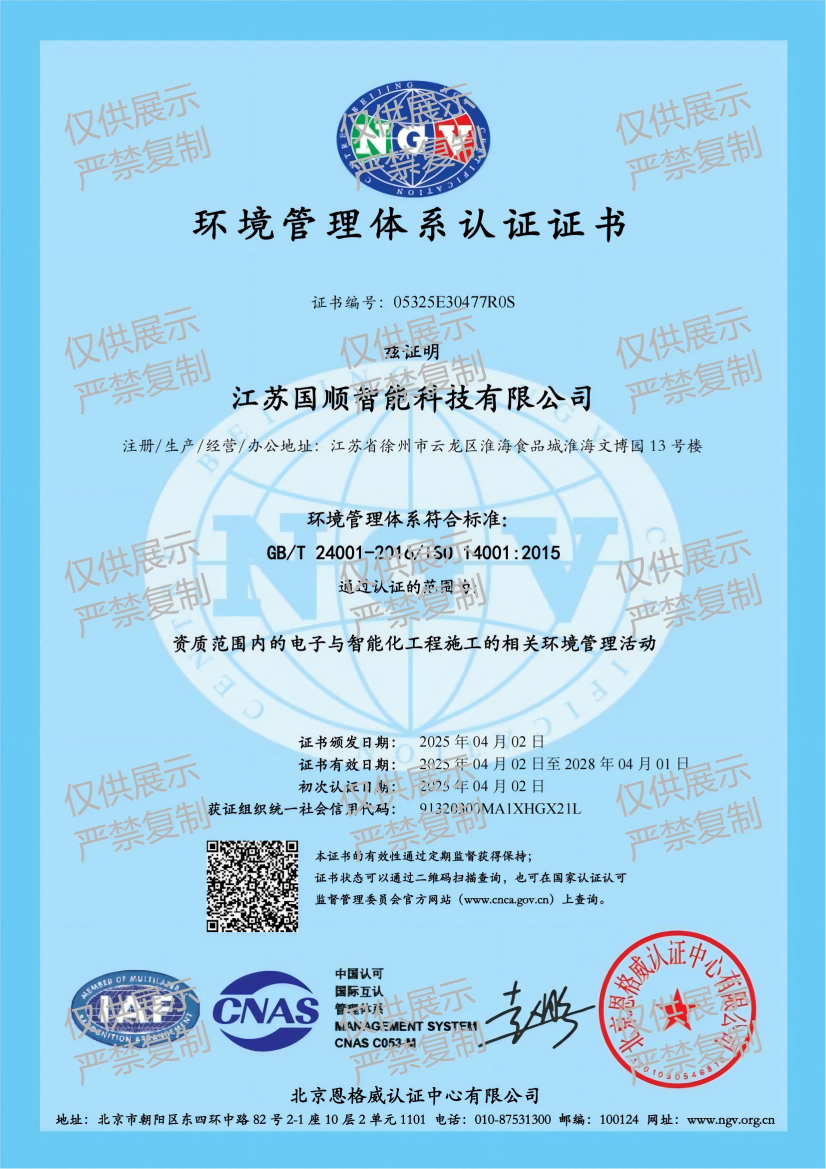 江苏国顺智能科技有限公司自成立以来,已迅速成长为中国新兴的高科技企业之一。公司注册资本2000万元,业务范围涵盖了智能化工程、智慧工地、软件开发、信息系统集成、消防工程、环保工程以及园林绿化工程设计与施工等多个领域。公司现有高级工程师1人、工程师3人、建造师8人等;科技研发团队有高级软件架构师2人、PMP国际认证项目经理2人,并与高校江苏建院有智能建造、BIM算量的合作。我们坚持以科技创新为驱动,以客户需求为导向,致力于为建筑行业的数字化升级提供全面的解决方案。在经营理念上,江苏国顺秉承现代化管理思想,不断完善运营体制,推动建筑行业向数字化管理转型。我们的目标是成为政府和企业信赖的数字化服务商,通过挖掘大数据价值,为管理创新和经营决策提供坚实的技术支持。